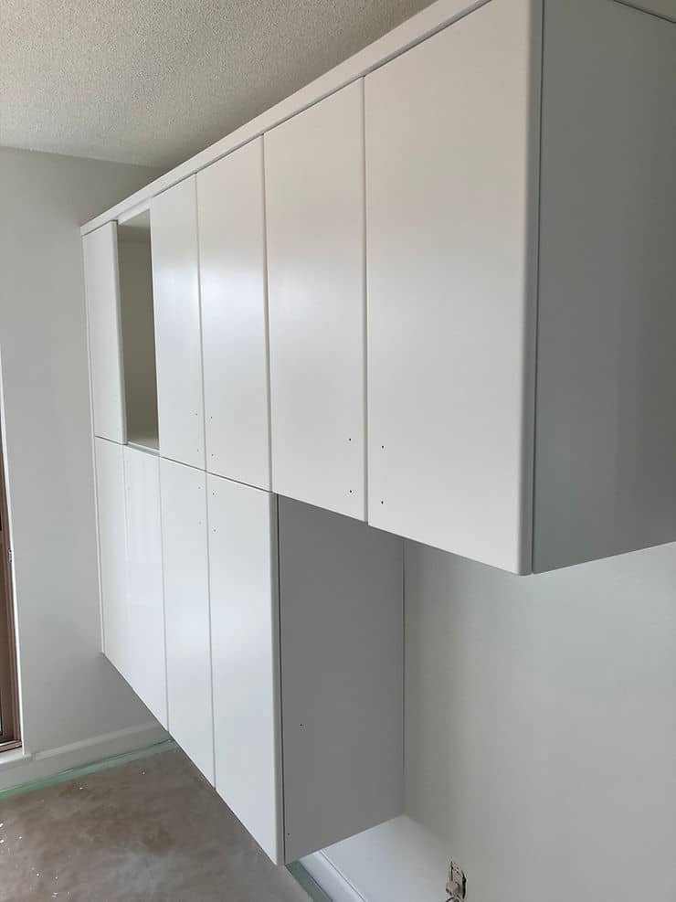 - Clean and Sand: We thoroughly clean and sand your cabinets to ensure the paint adheres properly.