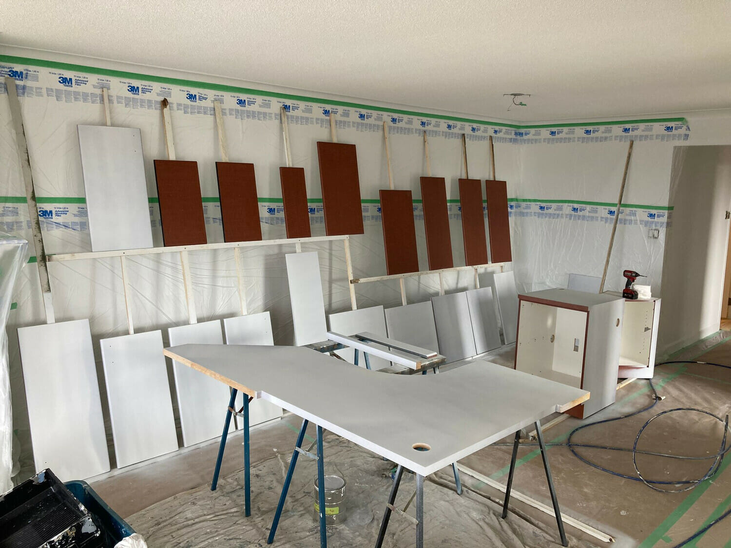 Our cabinet painting process at Fresh Coast Painting involves the following steps: