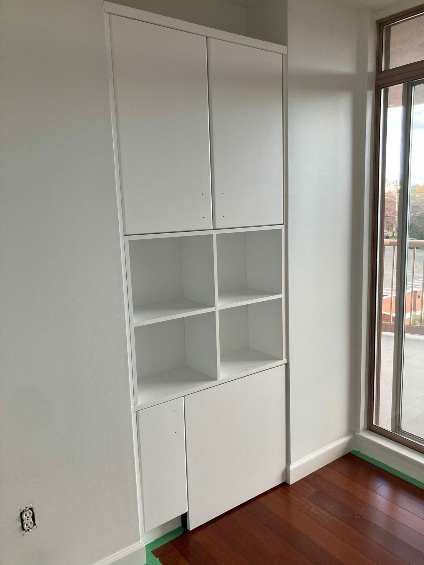 - Reinstall Hardware: We reinstall all hardware, completing the cabinet painting makeover.